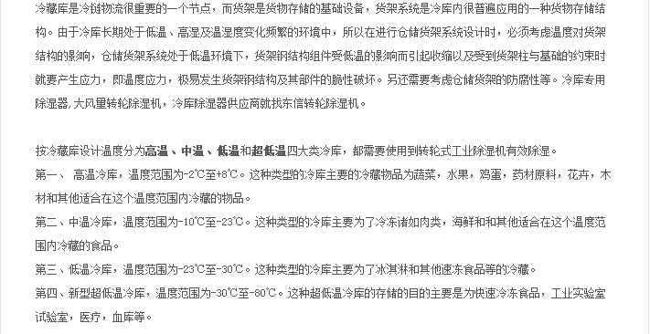 常規除濕機和管道除濕機均有升溫型、調溫型、降溫型三種功能類型,其中升溫除濕機主要用于除濕,無制冷功能,故適用于無溫度要求的除濕場所;調溫除濕機集除濕、制冷功能于一身,且制冷能力可調,故特別適用于熱負荷變化較大的除濕場所。降溫除濕機在除濕的同時有制冷功能,但制冷能力不可調,故適用于熱負荷較大,對相對濕度無要求的除濕場合。
