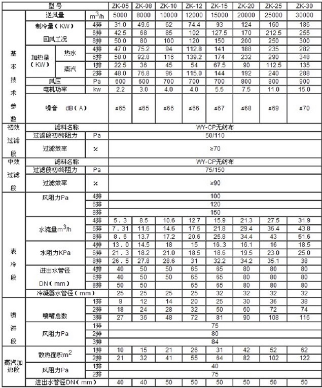 zhngyou/眾有組合式空調主機技術規格: